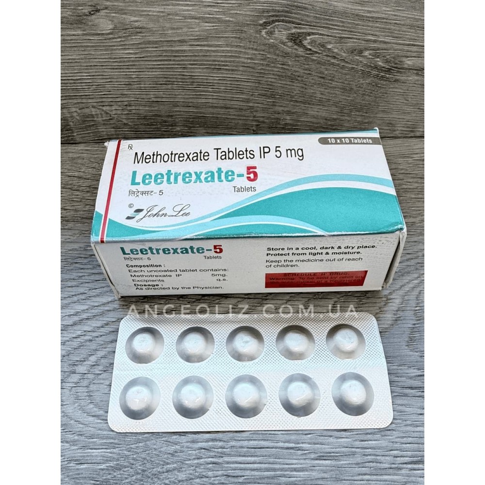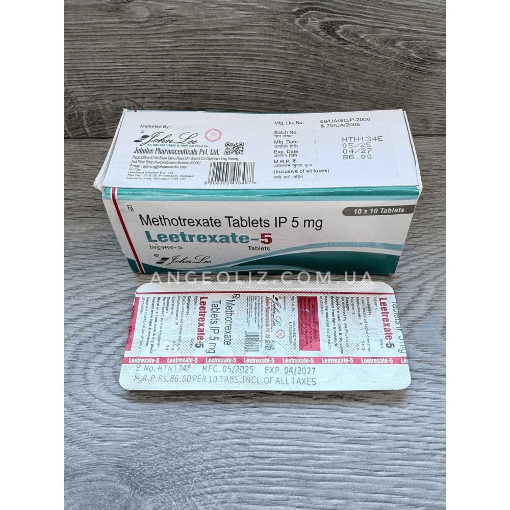 Метотрексат 5 мг (Methotrexate Tablets IP 5 mg — Leetrexate-5) — якісний препарат від індійського виробника John Lee. Виготовлений відповідно до стандартів індійської фармакопеї (IP), що забезпечує стабільну якість діючої речовини.