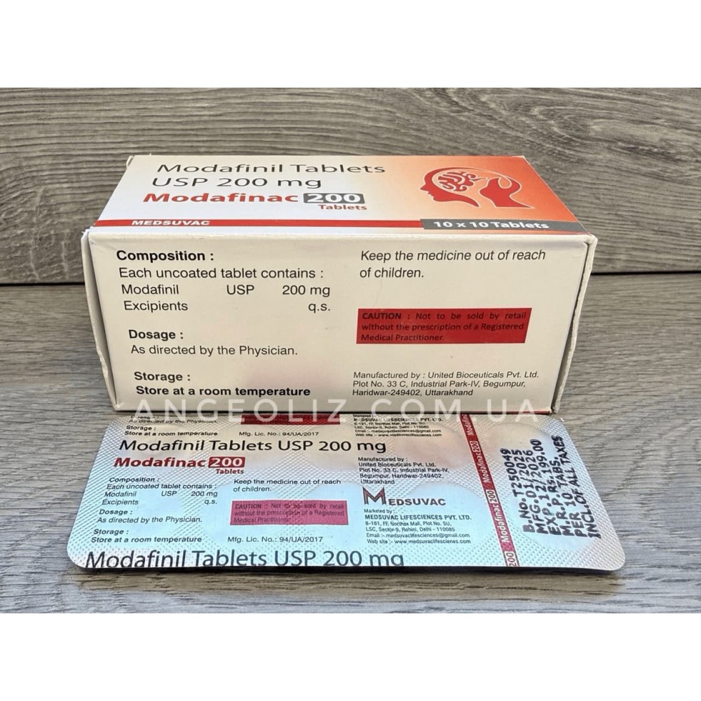 Модафініл 200 мг (Modafinil Tablets USP 200 mg — Modafinac) — якісний засіб від індійського виробника Medsuvac Lifesciences. Препарат виготовлений відповідно до стандартів фармакопеї США (USP), що гарантує точне дозування та чистоту діючої речовини.