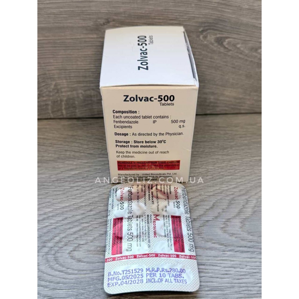 - Дозування: 500 мг фенбендазолу в кожній одиниці продукту.